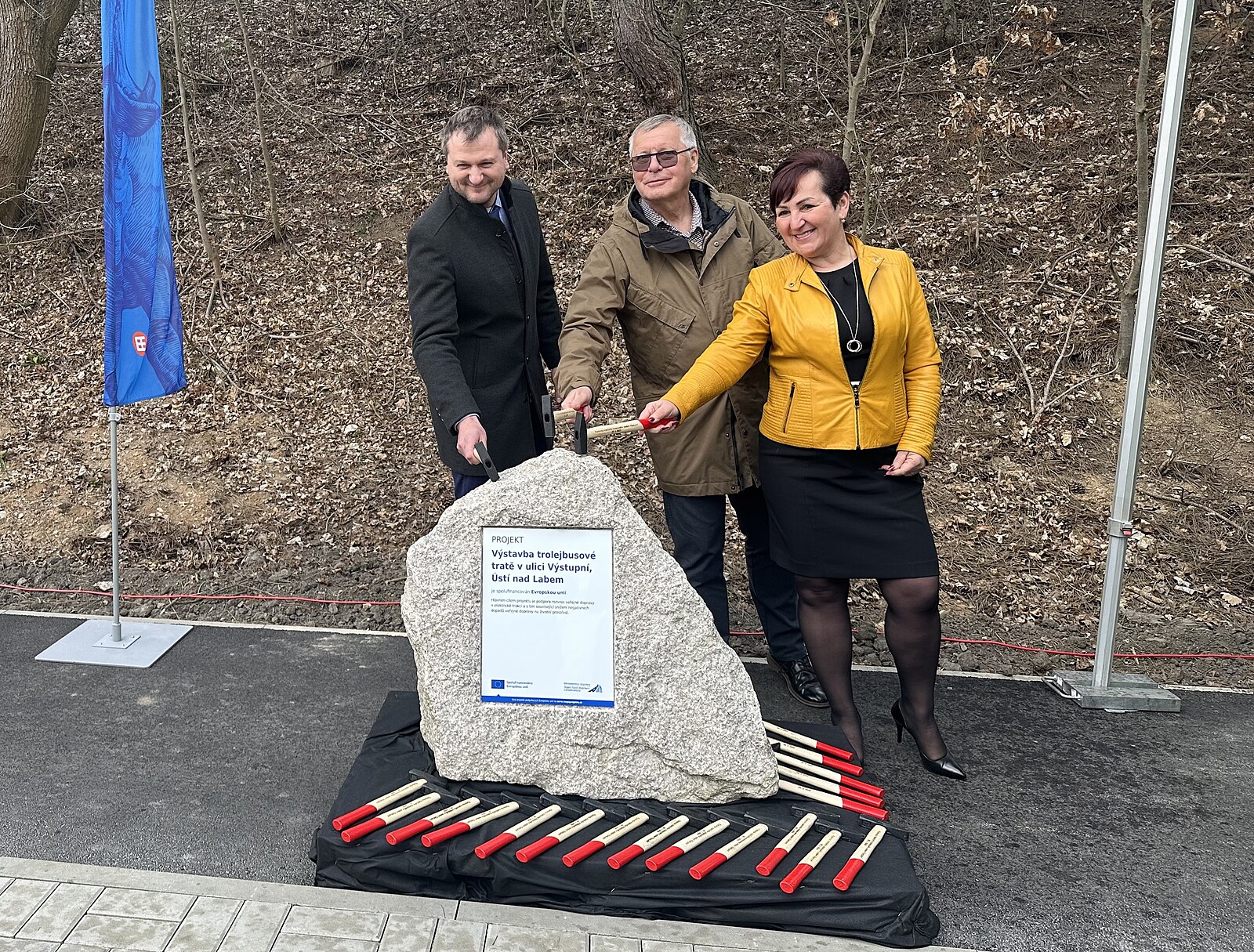 „Ze země jsou vyvedené kabely, postupně začneme se samotným osazováním stožárů. Na některých bude kromě trolejového vedení také veřejné osvětlení,“ dodal.