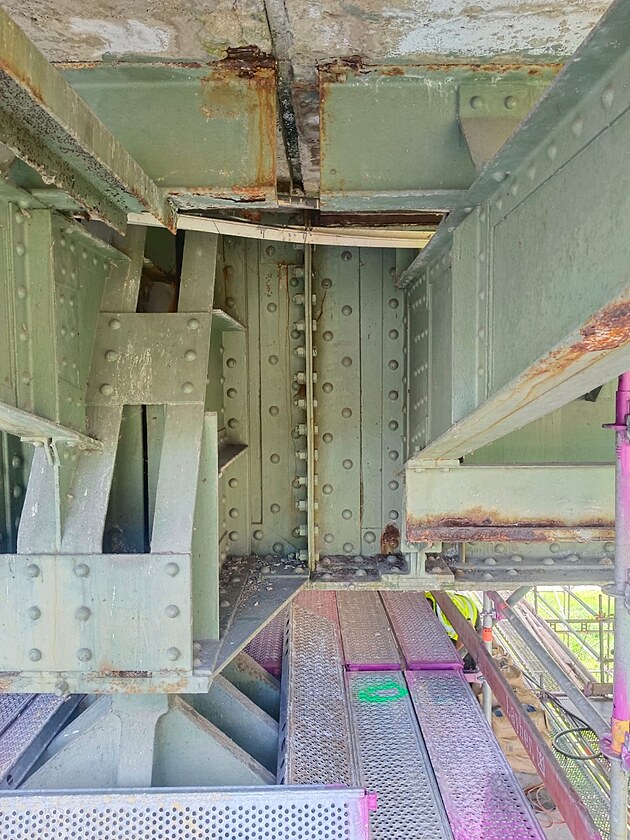 V ocelové konstrukci Tyršova mostu v Děčíně jsou desítky centimetrů dlouhé trhliny. (květen 2025)
