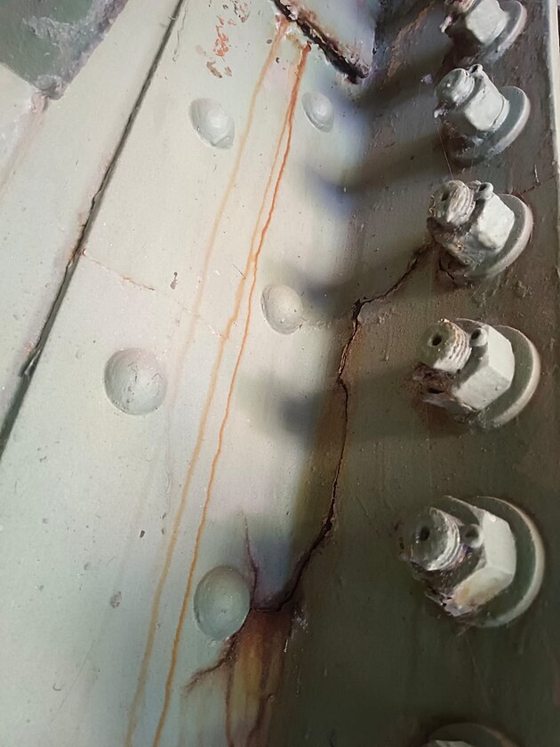 V ocelové konstrukci Tyršova mostu v Děčíně jsou desítky centimetrů dlouhé trhliny. (květen 2025)