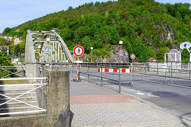 Uzavřený Tyršův most v Děčíně (květen 2025)