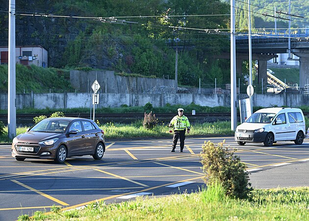 Ústí nad Labem prožívá první ranní špičku po uzavření Benešova mostu. Policisté jsou v terénu a v případě potřeby řídí dopravu. (28. dubna 2025)