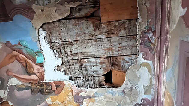 Velemín opravuje barokní gloriet u zámku v Milešově. Před sebou má ještě spoustu práce. (září 2025)