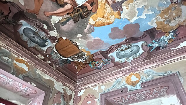 Velemín opravuje barokní gloriet u zámku v Milešově. Před sebou má ještě spoustu práce. (září 2025)
