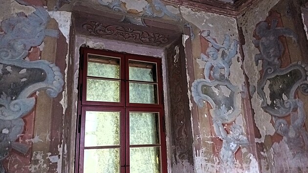 Velemín opravuje barokní gloriet u zámku v Milešově. Před sebou má ještě spoustu práce. (září 2025)