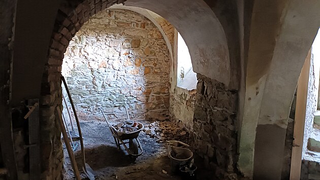 Velemín opravuje barokní gloriet u zámku v Milešově. Před sebou má ještě spoustu práce. (září 2025)