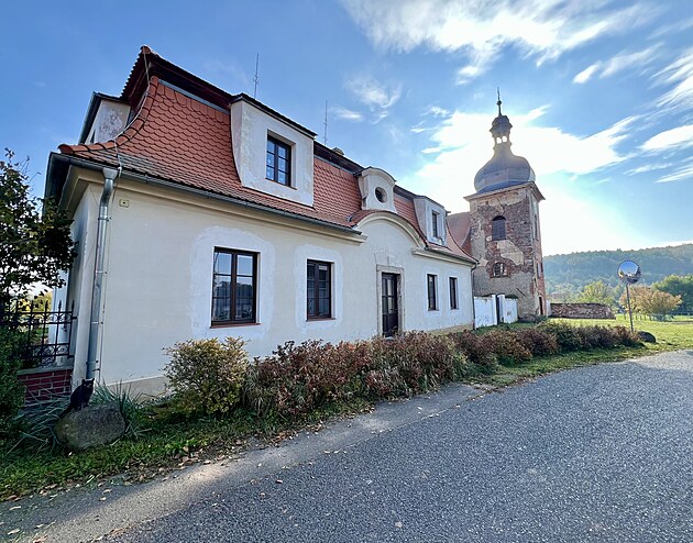 Kostel ve Vidhosticích na Lounsku s opravenou farou (říjen 2024)