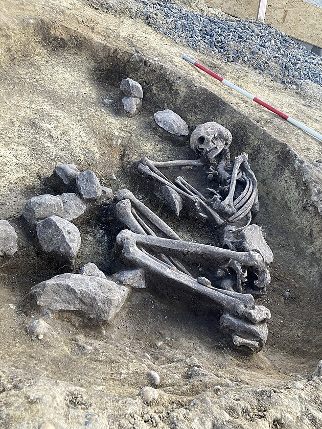 Při výzkumu na západním okraji obce Vražkov na Litoměřicku archeologové objevili keramické nádoby, kamenné brousky a zrnotěrky, a především lidské ostatky, z období mladší fáze Únětické kultury (starší doby bronzové), tedy zhruba z 17.–18. století před Kristem. (červen 2025)