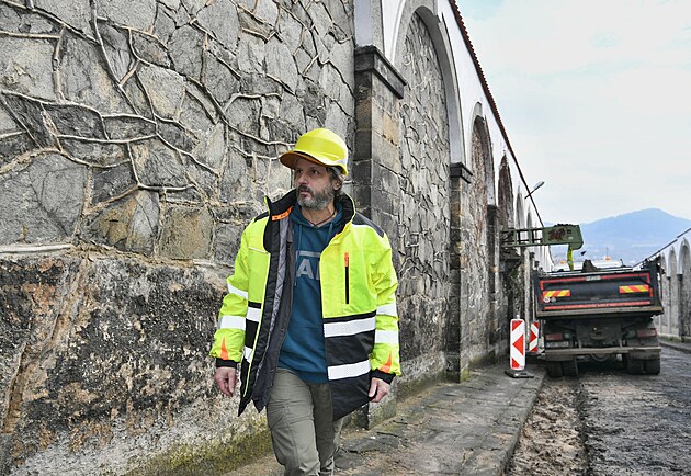 Správce děčínského zámku Zdeněk Erneker na přístupové cestě zvané Dlouhá jízda (16. února 2024)