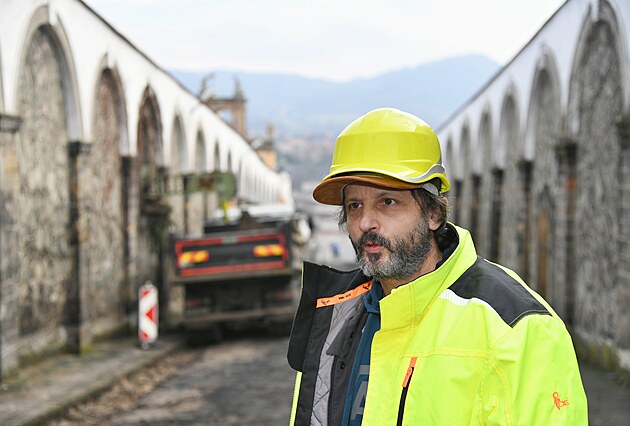 Správce děčínského zámku Zdeněk Erneker na přístupové cestě zvané Dlouhá jízda (16. února 2024)