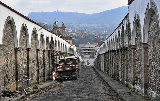 Skoro tři stovky metrů dlouhou přístupovou cestu na děčínský zámek zvanou Dlouhá jízda začali rekonstruovat na začátku února. (16. února 2024)