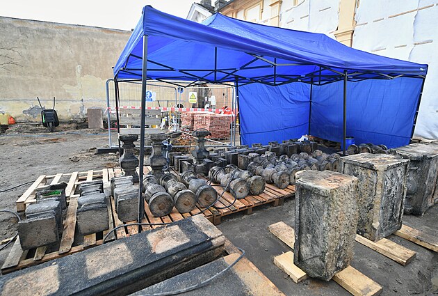 Kompletní rekonstrukcí prochází i přilehlá Růžová zahrada. Odstraněny jsou veškeré balustrády a další ozdobné prvky, musí projít očistou. (16. února 2024)