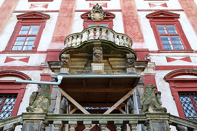 Do budovy zámku se vstupuje hlavním vchodem po schodišti se sochařskou výzdobou.