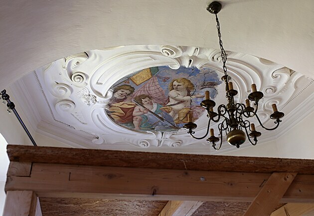 V interiéru se dochovala řada dobových prvků, například nástěnné malby a bohatá štuková výzdoba.