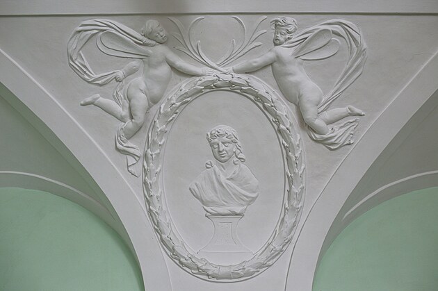 V interiéru se dochovala řada dobových prvků, například nástěnné malby a bohatá štuková výzdoba.