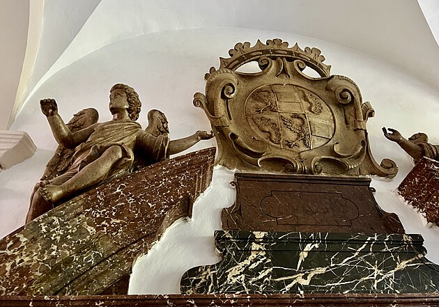 V interiéru se dochovala řada dobových prvků, například nástěnné malby a bohatá štuková výzdoba.