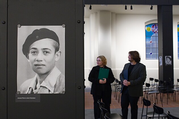V synagoze jsou na oplechovaných sloupech umístěny černobílé fotografie tváří 48 chlapců z více než 900 židovských dětí osvobozených americkou armádou v Buchenwaldu 11. dubna 1945.