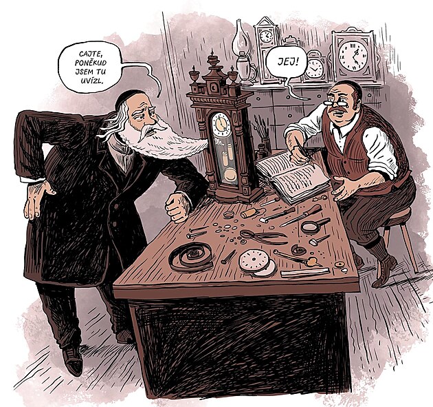 Při návštěvě synagogy mohou návštěvníci zavítat i do rabínského domu. Tam jsou k vidění ukázky z komiksové knihy „Cha cha chá, zasmál se Mordechaj“ pojednávající o historii Židů.