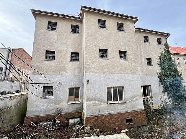 Budova bývalé vojenské věznice v Žatci. Začíná její proměna na byty. (prosinec 2025)
