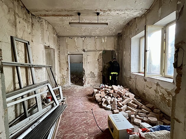 Budova bývalé vojenské věznice v Žatci. Začíná její proměna na byty. (prosinec 2025)