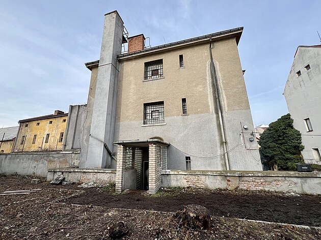 Budova bývalé vojenské věznice v Žatci. Začíná její proměna na byty. (prosinec 2025)