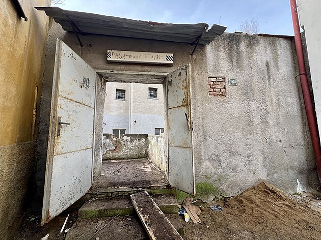 Budova bývalé vojenské věznice v Žatci. Začíná její proměna na byty. (prosinec 2025)