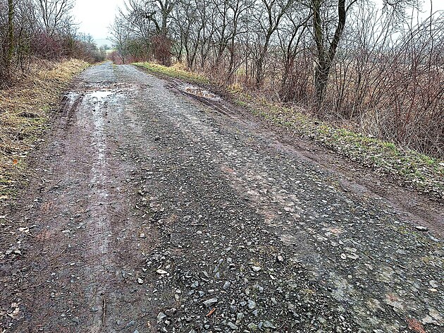 Cesta, po které mají obyvatelé Želče na Lounsku jezdit v době opravy mostu.