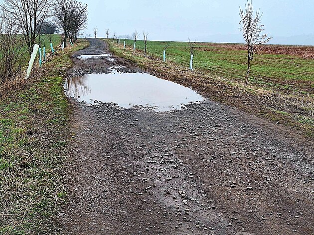 Cesta, po které mají obyvatelé Želče na Lounsku jezdit v době opravy mostu.