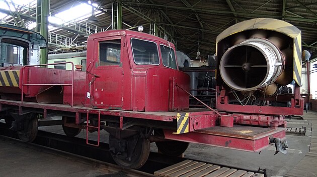 Odklízeč sněhu z kolejí s proudovým motorem z letounu MiG-15