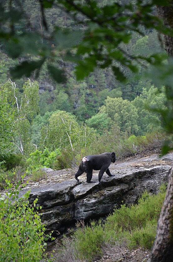Makak, který uprchl z výběhu v děčínské zoo. (14. června 2023)