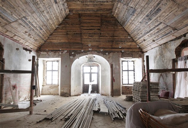 První patro. Zde chystá majitel zámku apartmány.