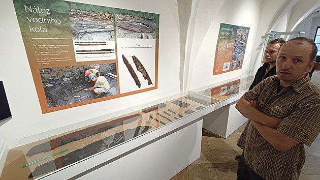 Nálezy, které změnily historii Havlíčkova Brodu, ukazuje nyní havlíčkobrodské muzeum. Mezi nejcennější patří fragmenty velkého pětimetrového mlýnského kola, které pohánělo mlýn na drcení a zpracování stříbrné rudy. Na snímku jsou vedoucí archeologického týmu Jakub Těsnohlídek (v hnědé košili) a archeolog havlíčkobrodského muzea Josef Krpálek..