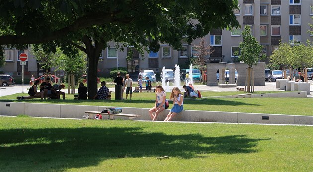Při současných vedrech děti skotačí u fontán a potůčku, který přes brodské Smetanovo náměstí vede. Ne všichni ve městě to však kvitují.