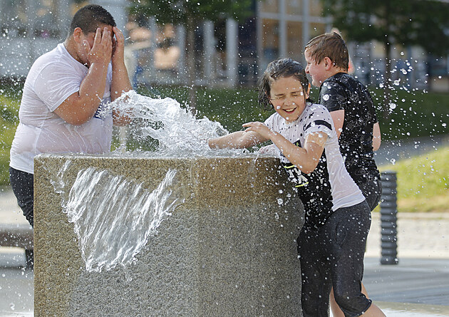 Smetanovo náměstí se ve vedrech pravidelně mění v neoficiální koupaliště. V potoce i ve fontánách řádí děti, některé v oblečení, jiné v plavkách a mnohé dokonce nahé. Na každý má pro tyto radovánky v centru města pochopení.