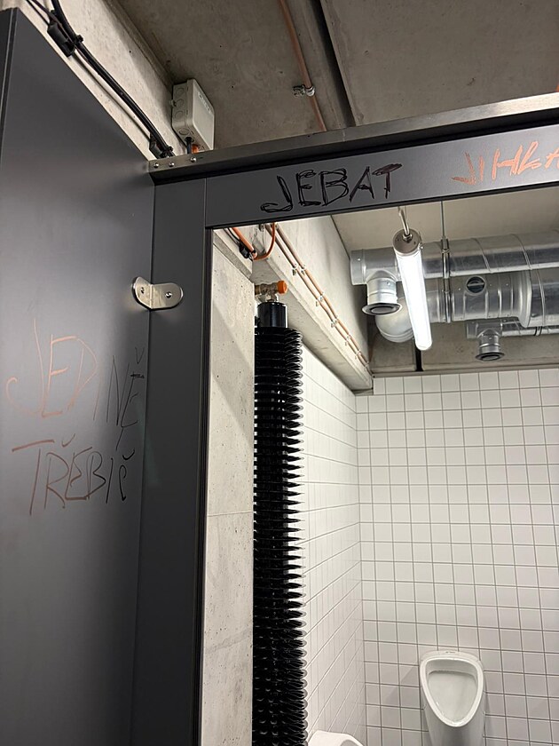 Po úterním hokejovém derby mezi prvoligovými hokejisty Dukly Jihlava a Horácké Slavie Třebíč zůstaly na záchodech Horácké arény vulgární nápisy.