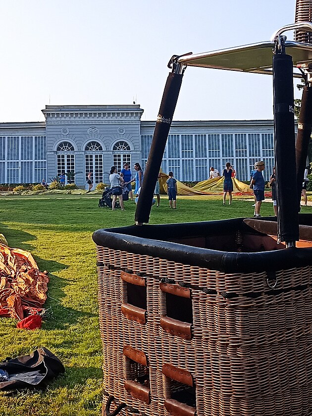 Hromadný start horkovzdušných balónů na 29. ročníku akce Balóny nad Telčí. (15. srpna 2025)