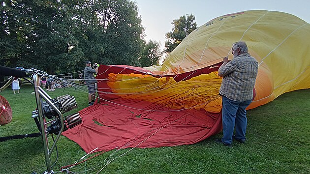 Hromadný start horkovzdušných balónů na 29. ročníku akce Balóny nad Telčí. (15. srpna 2025)