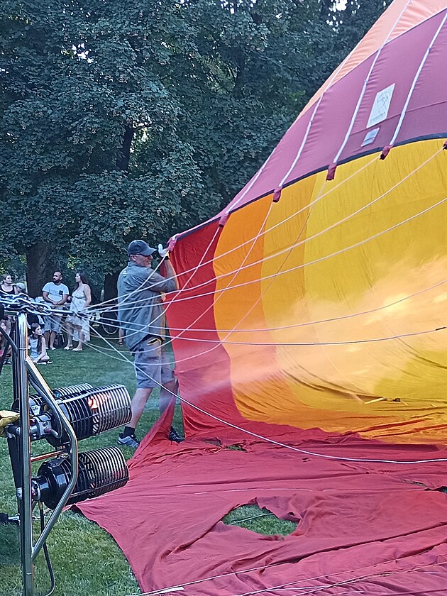 Hromadný start horkovzdušných balónů na 29. ročníku akce Balóny nad Telčí. (15. srpna 2025)