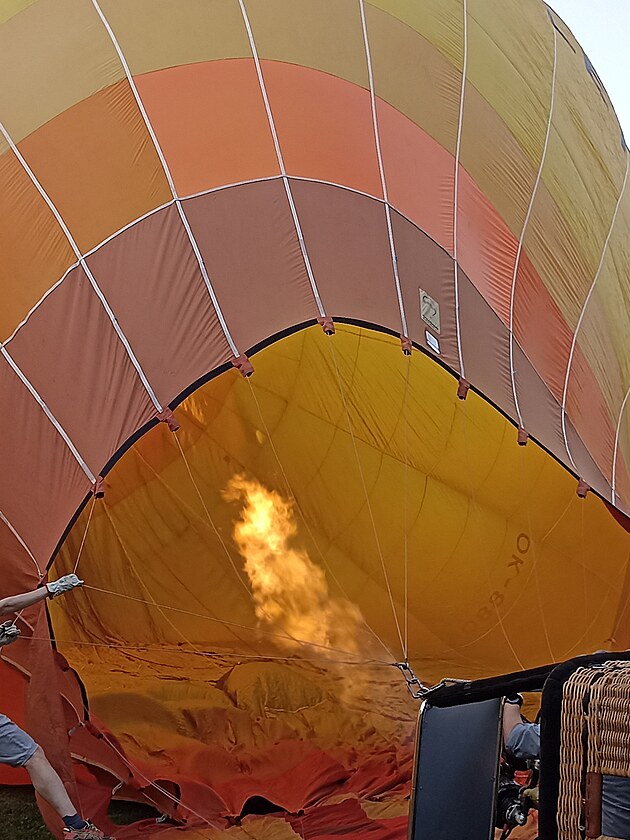 Hromadný start horkovzdušných balónů na 29. ročníku akce Balóny nad Telčí. (15. srpna 2025)