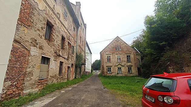 Na velkou část areálu bývalého Amylonu v Havlíčkově Brodě nikdo po desítky let nesáhl. Výroba tu skončila po druhé světové válce. Jednu z budov město adaptovalo na byty, jednu nechalo před mnoha lety alespoň provizorně zabezpečit, zbytek jsou ale ruiny na zbourání. Pod svahem vpravo byly dříve dřevěné stáje, které chtěl historik Michal Kamp nechat zachránit.