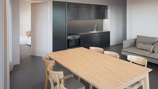 Takto by dle vizualizace mohl vypadat interiér nového domu sociálního bydlení u řeky Sázavy ve žďárské ulici Dr. Drože.