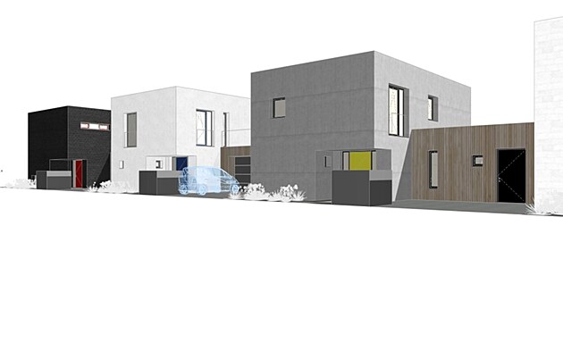 Takto by podle zveřejněných vizualizací měla vypadat nová řadová zástavba v lokalitě Na Nebi. Jedná se o pozemky na severním okraji města i obchvatu a koupaliště.