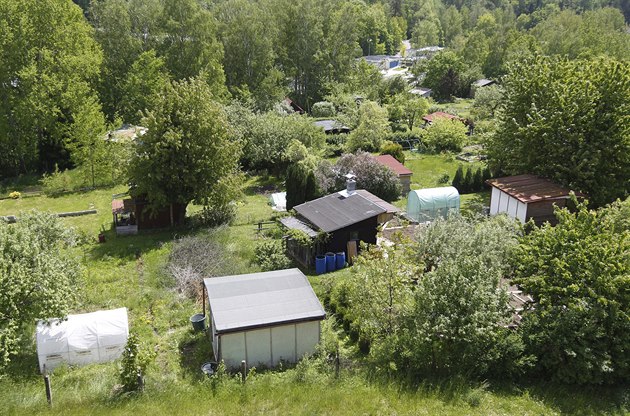 Zahrádkářská kolonie Na Nebi je zelenou oázou poblíž panelového sídliště. Letos na podzim však musí ustoupit nové výstavbě. Bourat zděné chaty a kácet stromy nájemníci v odůvodněných případech nemusí.