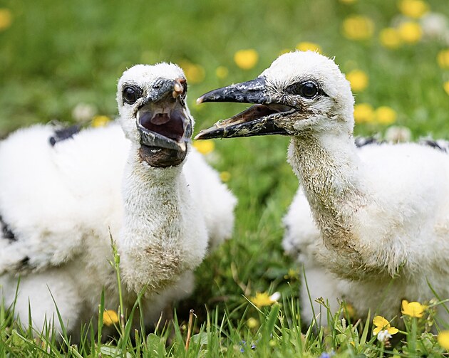 Dvě odebraná čápata v záchranné stanici posledních čtrnáct dní nabírala potřebné síly a rychle rostla.