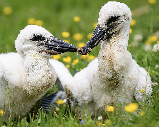 Dvě odebraná čápata v záchranné stanici posledních čtrnáct dní nabírala potřebné síly a rychle rostla.