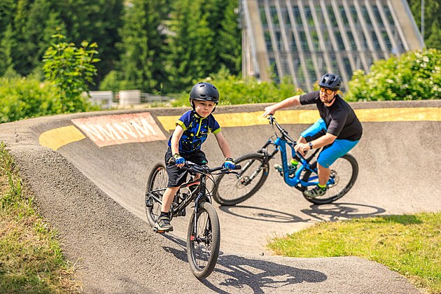 Pumptrackovou dráhu s vlnami a klopenými zatáčkami už využívají děti a mladí i ve Vysočina Aréně v Novém Městě na Moravě.