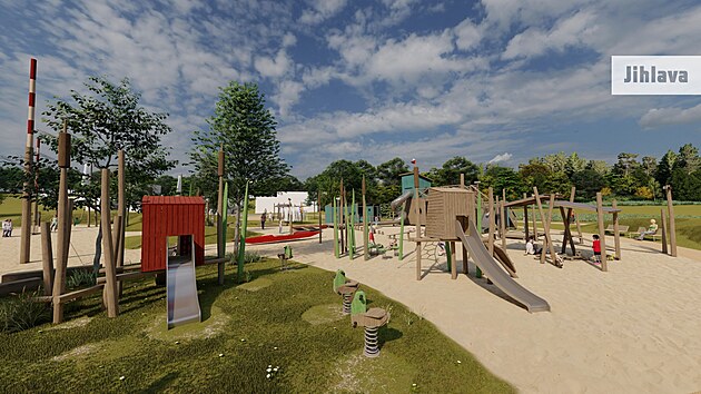 Vodní plochu na připravovaném dětském hřišti v areálu Český mlýn v Jihlavě má návštěvníkům znázorňovat rozsáhlý prostor s pískem a kameny.
