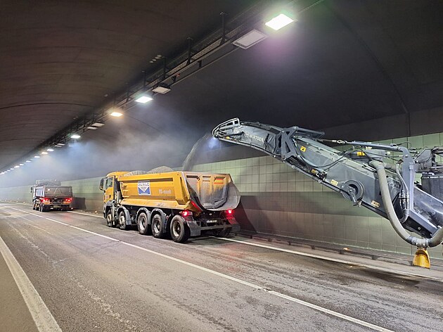Rekonstrukce silnice 38 v Jihlavském tunelu a navazující části obchvatu města probíhají i za ne zrovna ideálního počasí. Nasazeny tu jsou hned dvě frézy.