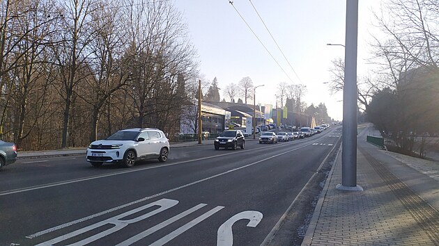 Vyšetřování tragické nehody zkomplikovalo dopravu v Jihlavě, dlouhé kolony se tvořily nejen v Okružní ulici. (11. února 2025)