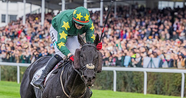 Irský žokej Keith Donoghue v sedle Stumptowna si jede pro vítězství ve Velké pardubické.