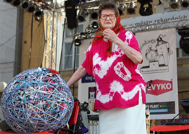 V Pelhřimově na festivalu rekordů představila například nejdelší háčkovaný řetízek. „V průběhu čtrnácti měsíců dokázala uháčkovat z vlny desetikilometrový řetízek. Výtvor představující dva miliony oček je smotaný do klubka o průměru 50 centimetrů a váží 16 kilogramů,“ přiblížil ředitel festivalu Miroslav Marek.